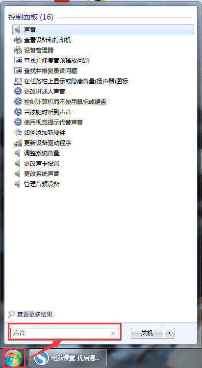 rn1、点击电脑左下角的“开始菜单”,在开始搜索区域内输入“声音”,按“Enter”键,如图所示:rn