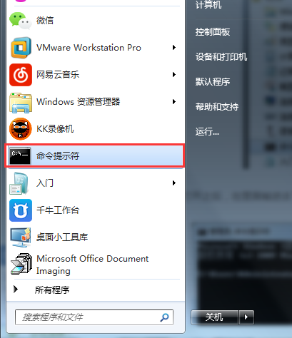 rn1、点击桌面开始菜单,找到并双击打开“命令提示符”。如图所示:rn