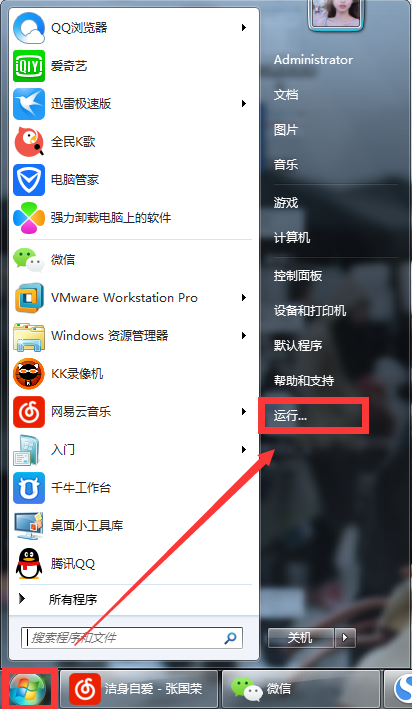 rn1、点击桌面左下角“开始菜单”图标,点击“运行”程序。如图所示:rn