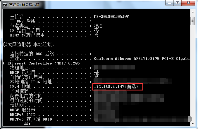 rn查询内网IP操作方法: