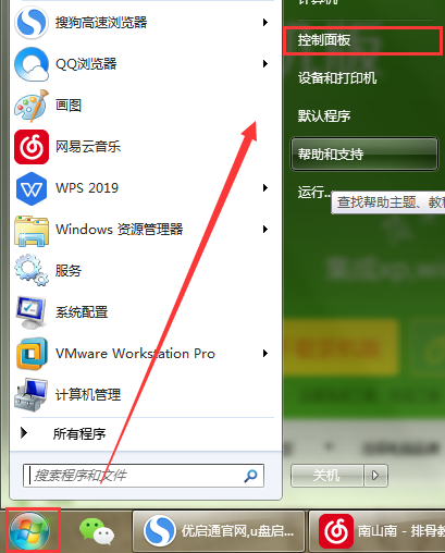 rn1、首先,在左下角选择打开“开始菜单”——“控制面板”。如图所示:rn