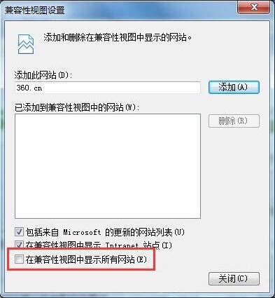 rn(注意:因为现在大多数用户的IE浏览器版本都为11,而从IE 11开始浏览器“兼容性视图设置”中就仅显示2项了,没有了“在兼容性视图中显示所有网站”这个选项,如果需要把网站使用兼容模式,需要手动一个一个加到兼容模式列表中)。rn