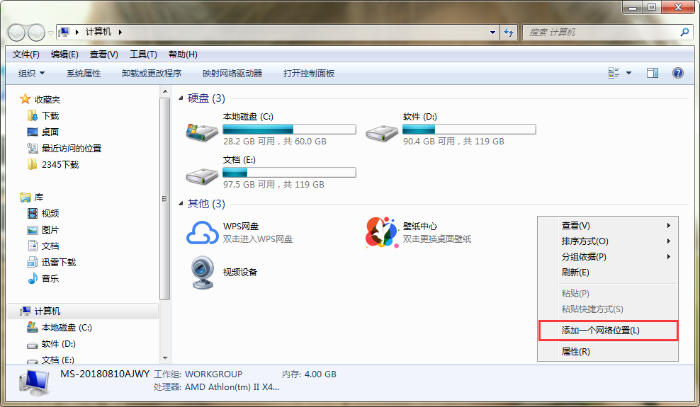rn1、首先,我们在桌面找到并双击打开“计算机”图标。打开“计算机”图标后,在窗口任意处右击鼠标打开“添加一个网络位置”。如图所示:rn