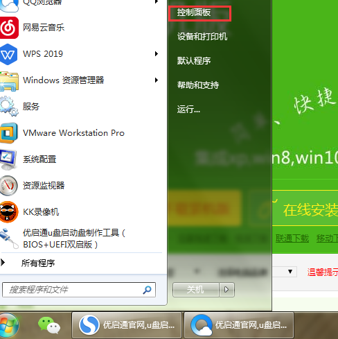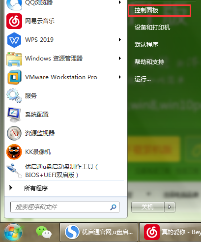 rn1、首先,点击桌面左下角的“开始菜单”,选择打开“控制面板”。如图所示:rn