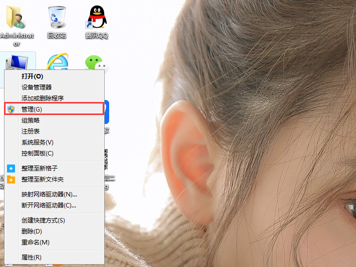 rn1、首先,在桌面找到“计算机”图标,右击鼠标选择打开“管理”。如图所示: