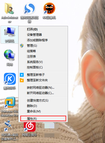 rn1、首先,在桌面选择“计算机”图标,右击鼠标选择打开“属性”。如图所示:rn