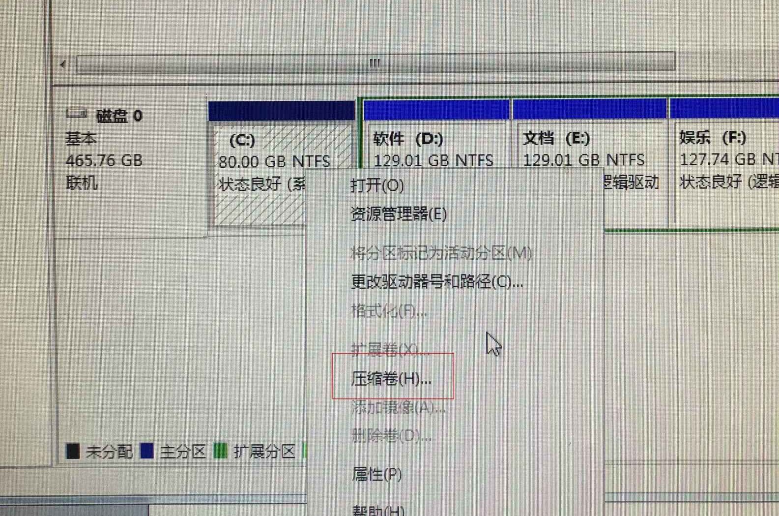 rn右击想要分区的磁盘,点击“压缩卷”(此处以c盘为例),随后会出现一个计算分区的界面。这时电脑会自动检测可用的分区大小,等待一会即可进入分区界面: