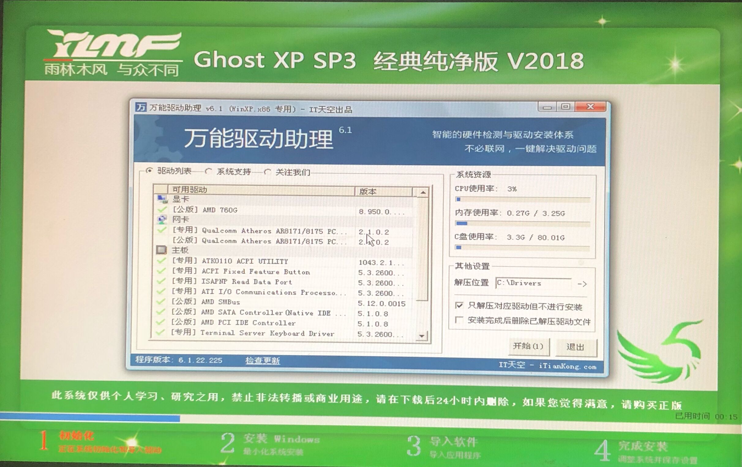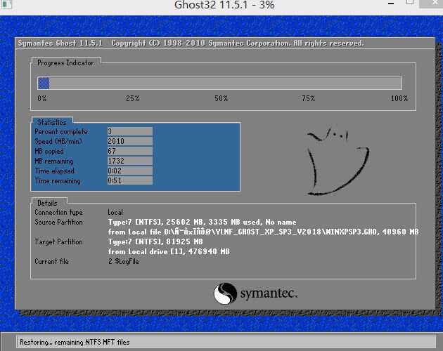 rn第六步:此时弹出GHOST还原界面,此过程约需2~3min,耐心等待完成:rn
