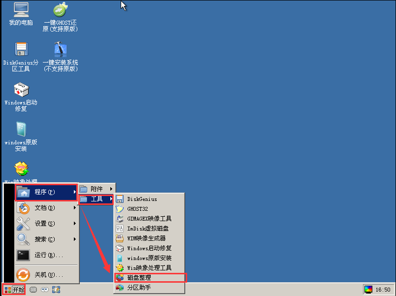 rn优启通磁盘碎片整理工具”的操作方法: