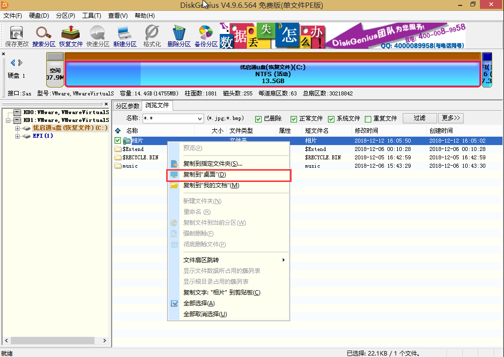 rn用优启通启动盘分区工具恢复误删照片的操作方法: